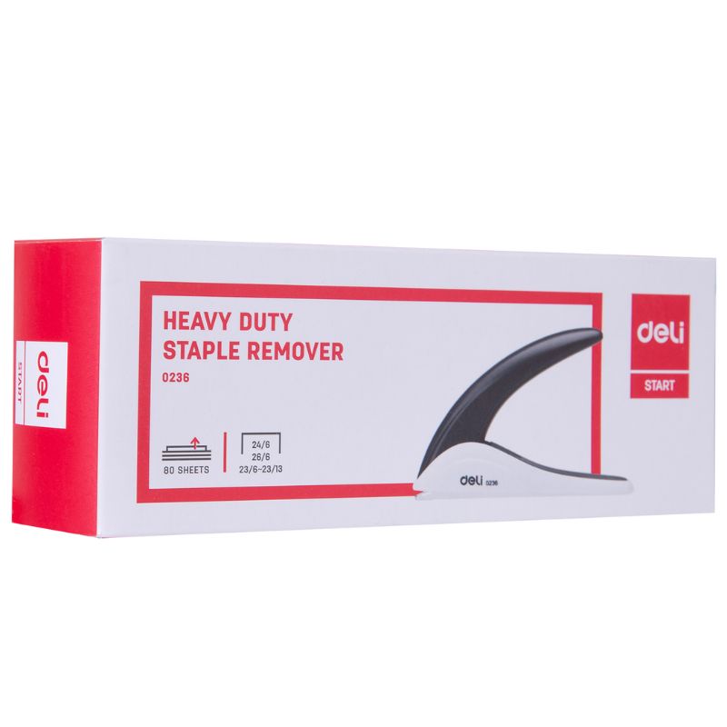 Eficiente y resistente, este removedor de grapas está diseñado para retirar grapas de documentos de hasta 80 hojas sin dañar el papel. Su diseño ergonómico lo hace fácil de usar y compatible con varios tipos de grapas, incluyendo 24/6, 26/6, 23/6 y 23/13.